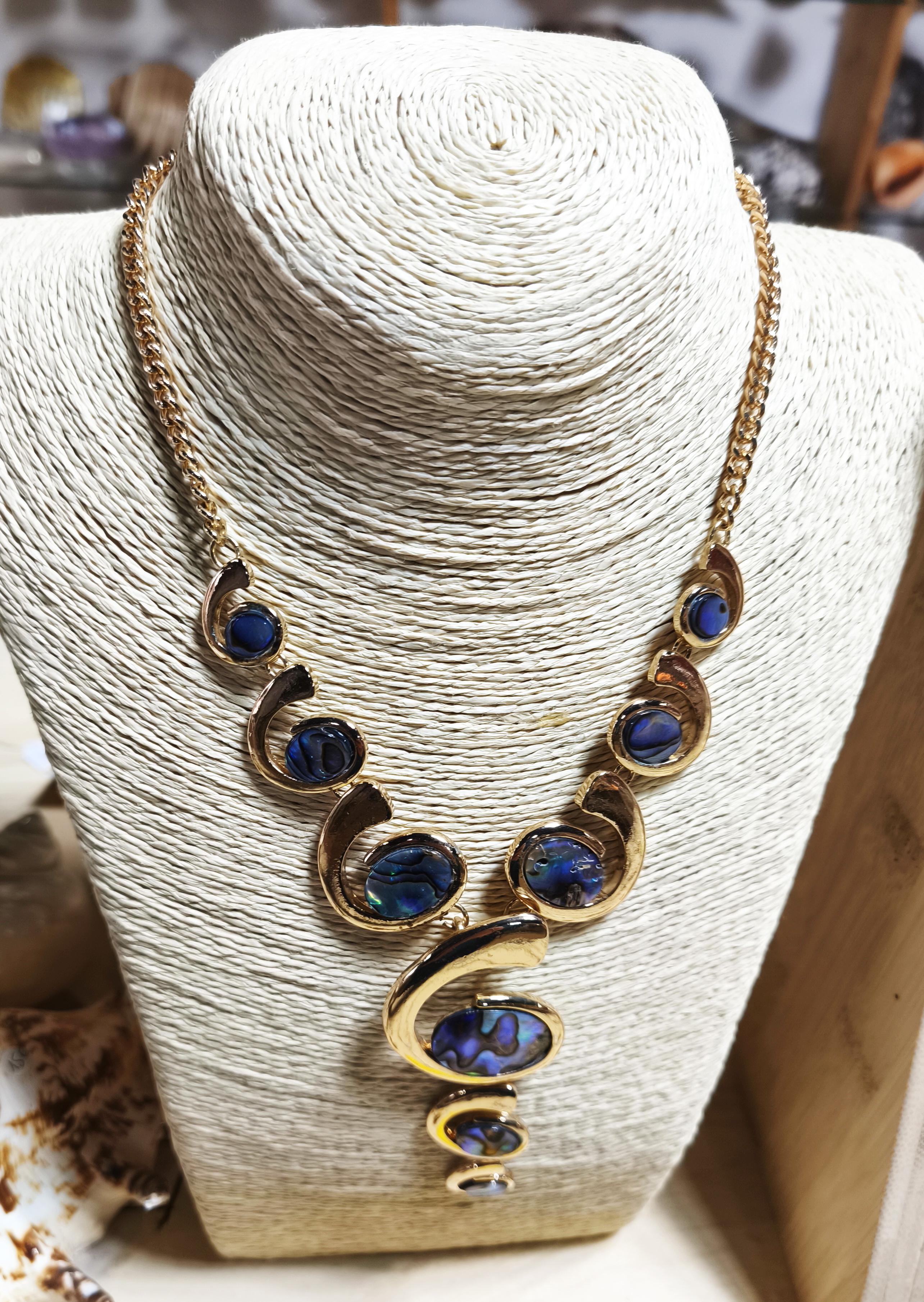 Collier fantaisie avec incrustation de nacre de nouvelle zelande(paua).